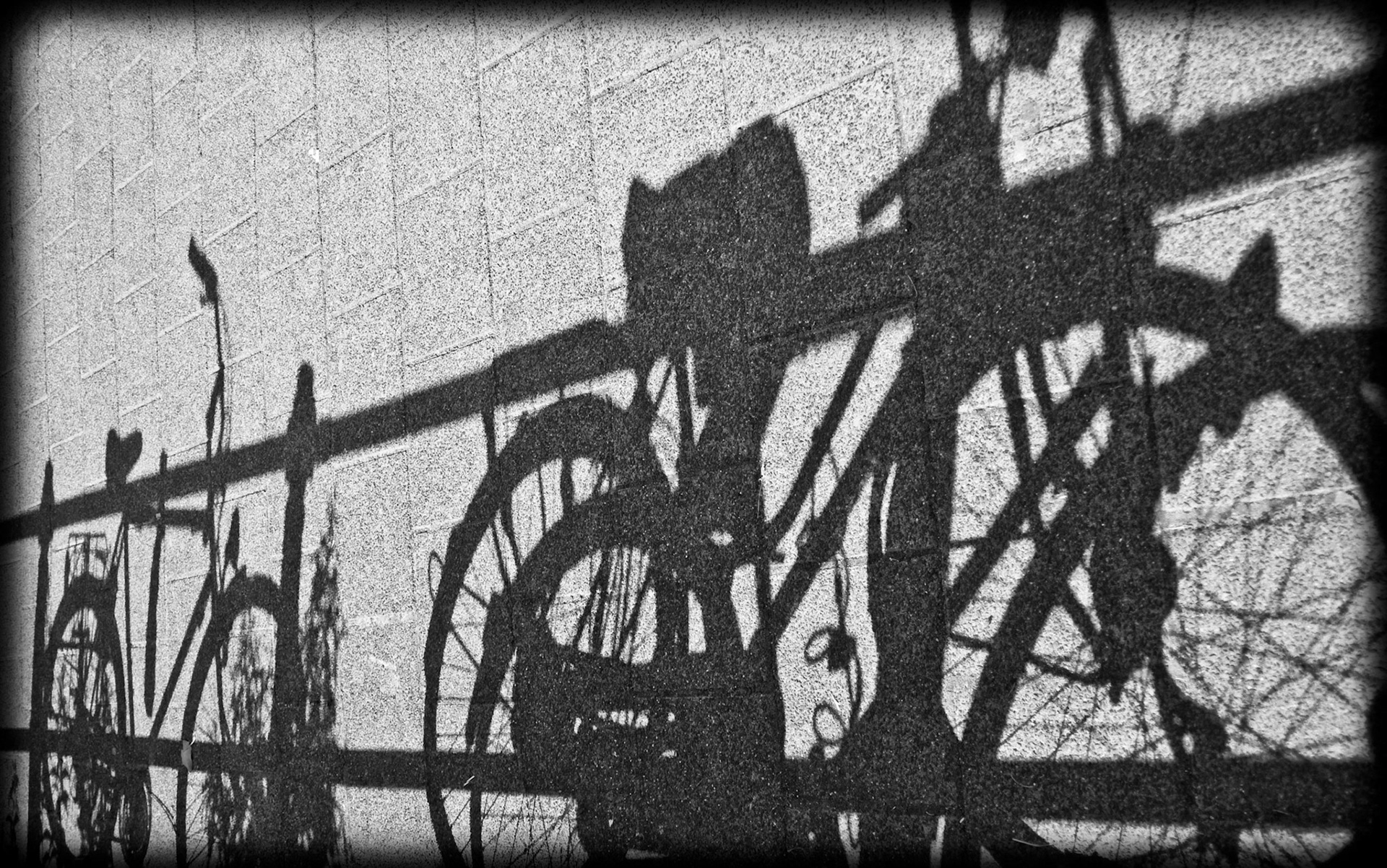 Juxtaposition of Pink Bike and Stenciled Graffiti.