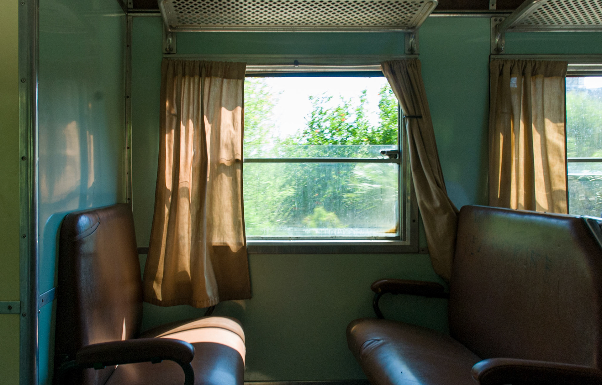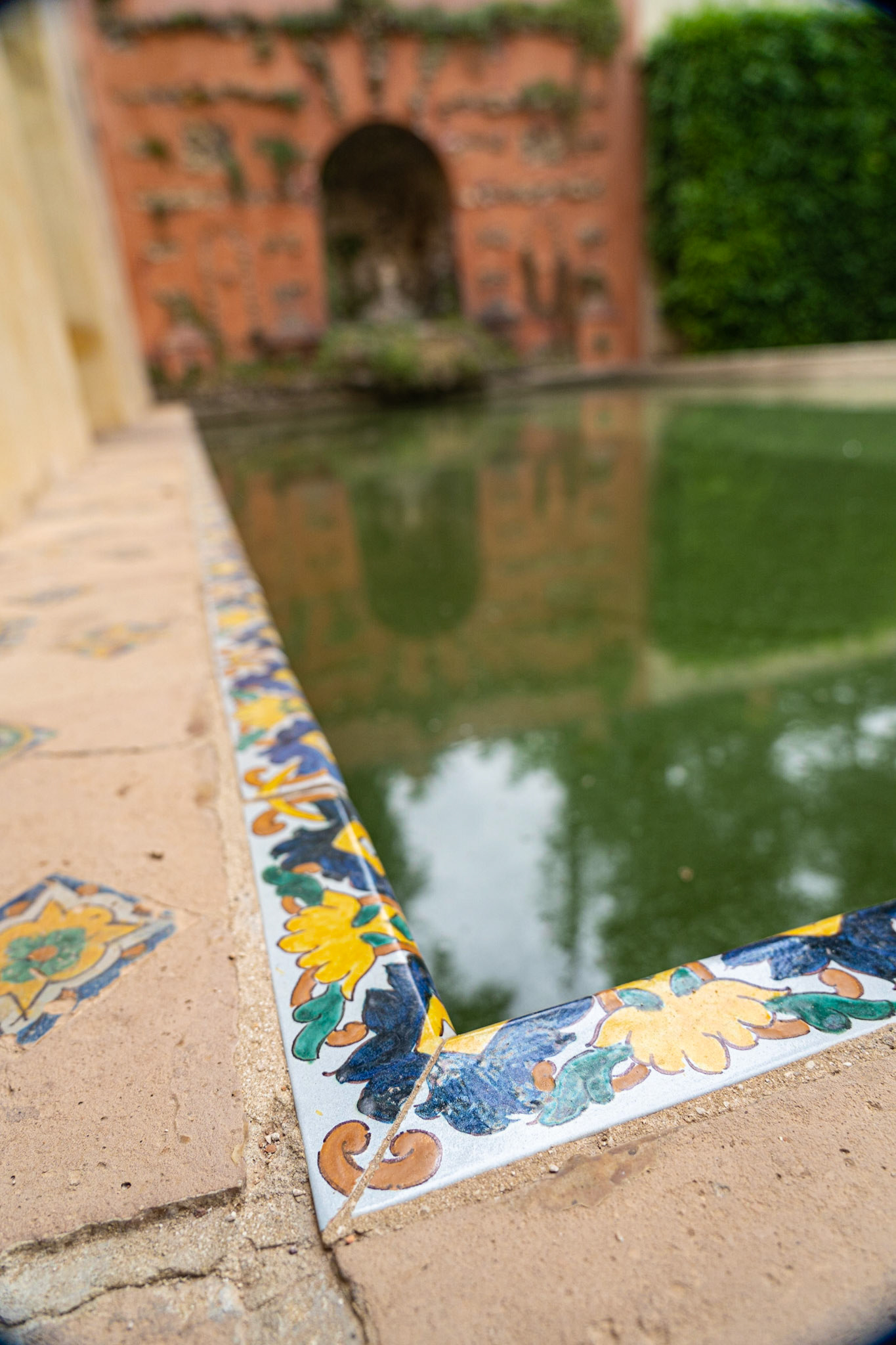 Reflections of a red hallway leading to an art gallery in Paris, France